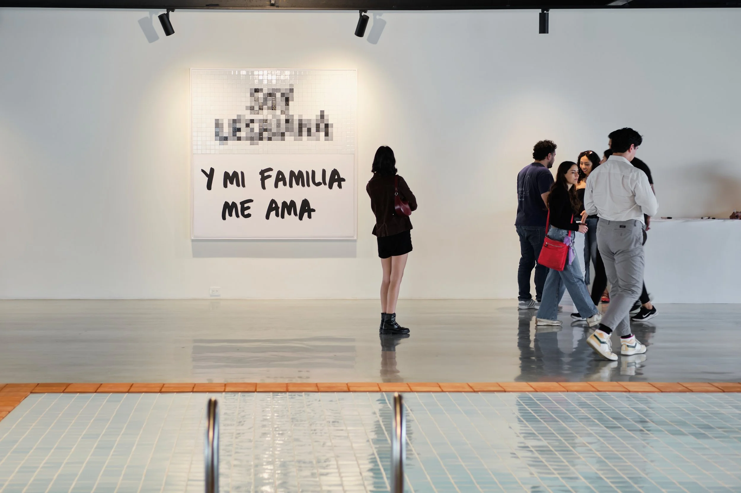 Tile by Tile, I Exist, Esra Gülmen’s (b. 1986, Istanbul, Turkey) first solo exhibition in Mexico, continues her exploration of the uncensorable present—a thread that runs through her earlier work, from the rainbow as a symbol (labeled 18+ in her home country) to two people sharing a kiss. The title evokes the ceramic mosaics that compose the pieces: square fragments of bodies suspended in space, reminiscent of censorship or pixelation—visual strategies of distortion. It suggests a whole shattered in an instant, but also a quiet subversion: reclaiming presence tile by tile, recovering identity through care-infused craft. What remains is the intimacy of unruly bodies—scattering like ashes or rippling outward like water. The exhibition unfolds as a ludic space, like a virtual dreamscape. It comprises four works: a site- specific floor mosaic framed in terracotta, a mosaic, a ceramic sculpture, and a wall piece. Gülmen’s Uncensorable series plays with concealment, revealing instead a persistent tension between freedom and desire. Her use of ceramic tiles—a medium shared across cultures and eras, from Byzantine mosaics and Islamic art to Guadalajara’s contemporary visual language—challenges the state-imposed restrictions that shaped her life in the Middle East, in both public and private spheres.